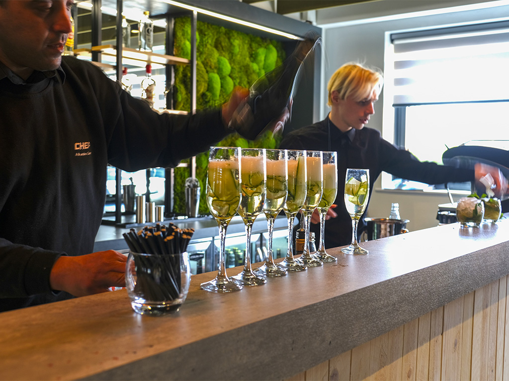 • The SkyLounge is a first-floor space with floor-to-ceiling windows and an outdoor terrace, accommodating 40–80 guests. It’s an ideal spot for relaxed networking, break-out sessions, post-event drinks or casual corporate sessions.