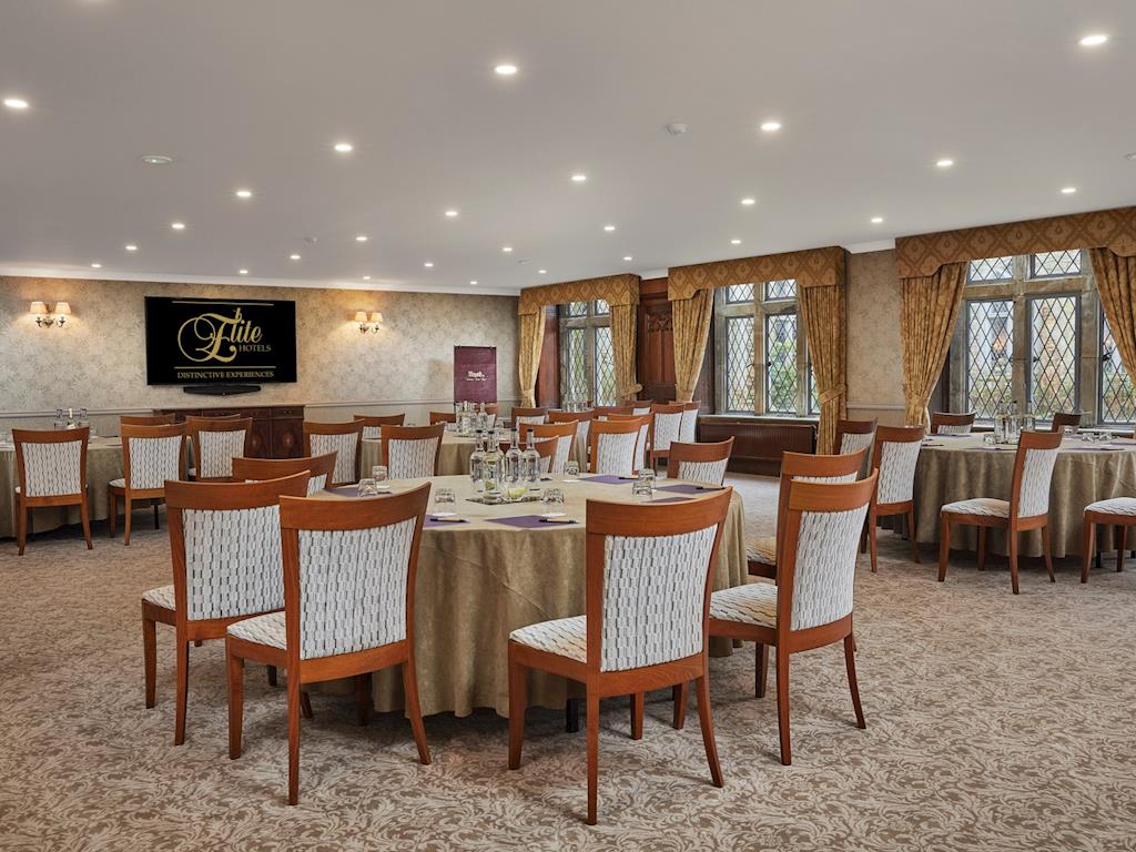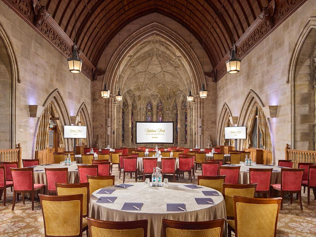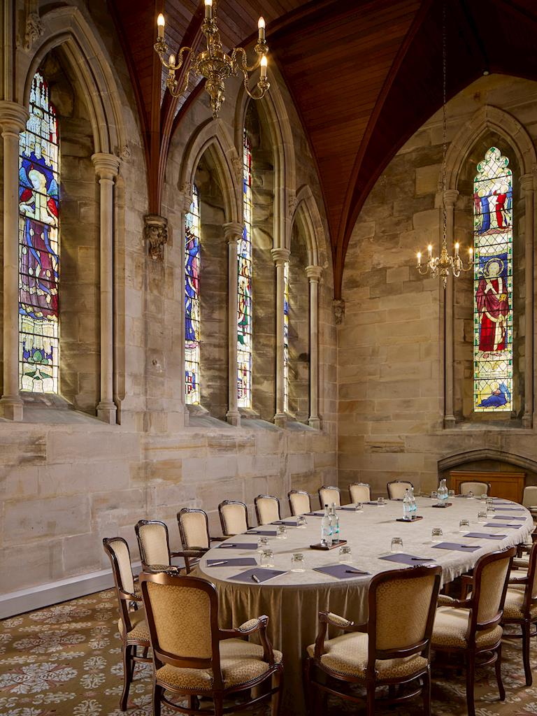The Richard Towneley Suite is accommodated in the converted chapel and comprises the Harry Clarke Suite, which offers magnificent stained glass windows and high vaulted ceilings and can accommodate a reception for 200 or alternatively a theatre-style meeting for up to 160, the John Haywood Suite, the Geoffrey Webb and the Mary Towneley Lounge. The Richard Towneley Suite is self-contained and also benefits from a private office.