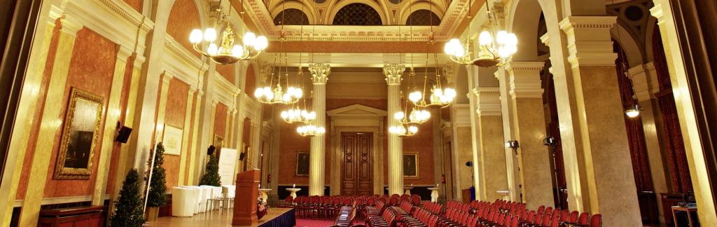 The Börsensäle building with its characteristic red-brick facade is one of the most significant monumental buildings on the famous Ringstrasse. The former headquarters of the Vienna stock exchange was built between 1871 and 1877 by the architect Theophil von Hansen. The newly renovated building is a top address for your event and offers an ideal setting for impressive events, presentations, (press) conferences, congresses, concerts and cocktail receptions from 80 to 540 persons. The ballroom is characterized by its richly decorated stucco ceiling, its 13 m high ceiling and the latest technical facilities. The Red Hall and Maria Theresien Hall are separately accessible and enhance the offer.
