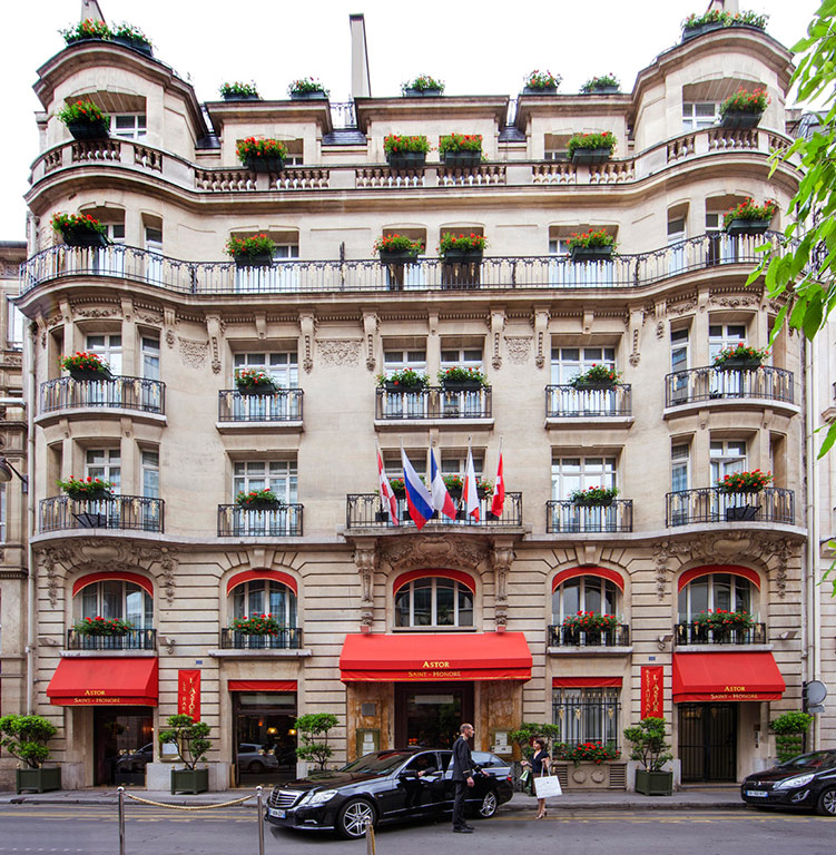 Located in a quite street, at the edge of the whirlwind of the sophisticated Rive Droite, the elegant Hotel Astor Saint-Honoré will seduce you thanks to its elegance. You will experience most intensely the lights of the extraordinary Paris, surrounding yourself by the luxury of this 4-star hotel, where a warm welcome and extensive comforts are rivalled only by culinary pleasures. |