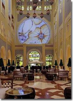 Each of the spacious 396 hotel rooms are beautifully furnished in the colours and styles of Moroccan influence, while all of the suites are themed on the Africa, Asian, Middle Eastern and southern European countries visited by 14th century Arabian adventurer Ibn Battuta.