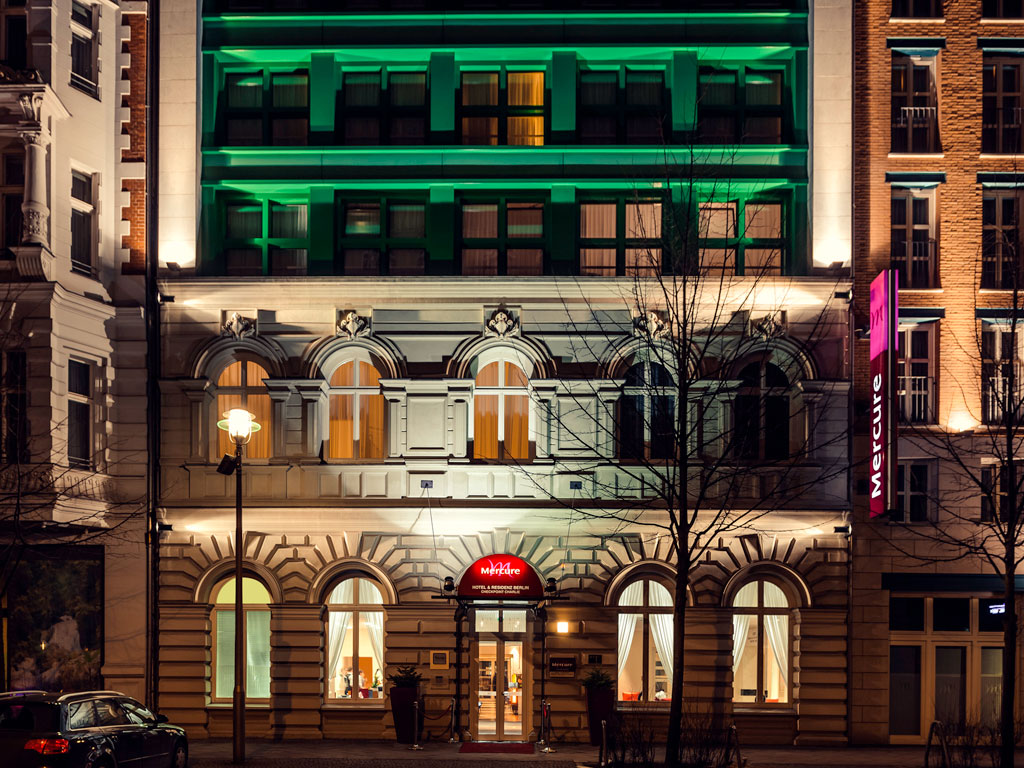 The Mercure Hotel & Residenz Berlin Checkpoint Charlie is a 4 star residence in a quiet central location, close to the Friedrichstraße shopping street. The unique building houses 135 spacious and contemporary rooms, apartments and suites with Wi-Fi access. Guests have 24-hour access to the gym and sauna, and can enjoy a free massage on Tuesday evenings. Event tickets can be purchased at reception via the Mercure Ticket Service. Public parking is available nearby.