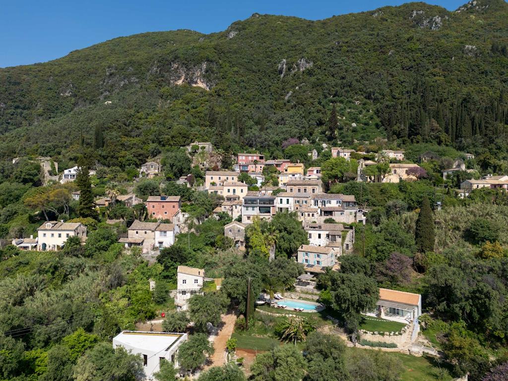 Nestled amidst spectacular olive and citrus trees, Olivestone Village is a secluded haven set between the majestic Pantokratoras Mountain and the crystal-clear waters of the Ionian Sea. Located in the charming traditional village of Agios Markos,Corfu,Greece, this exclusive retreat offers accommodation across three elegant villas and two cozy bungalows,comfortably hosting up to 19 guests.