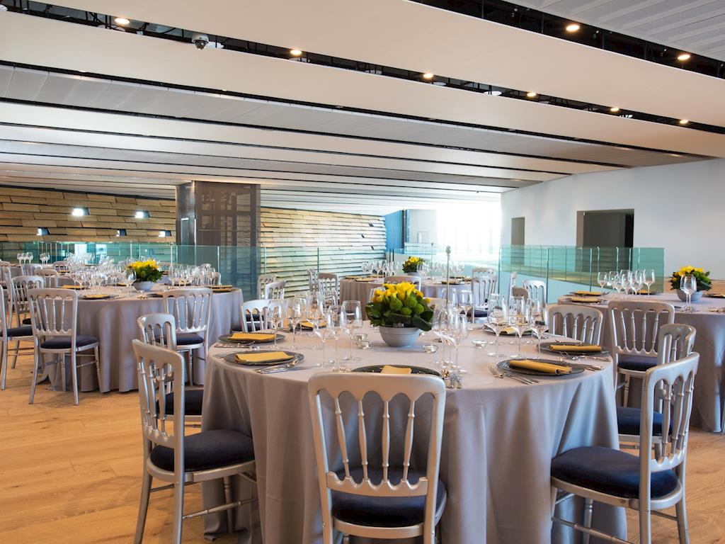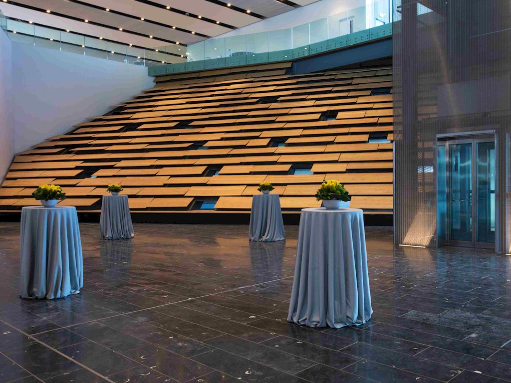 Begin your event with a drinks and canapé reception in Locke Hall: An impressive space with stepped walls permeated by slot windows to create a unique environment which immediately instils a true sense of